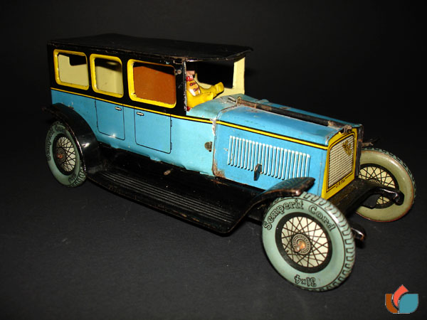 Moko, sedan with working motor, Germany prewar, from the thirties, 24cm, tin, windup ok, with driving man, color mega rare.